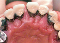 歯肉に発赤、腫脹がみられ歯周病が進行しています。
