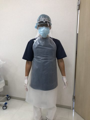 N95マスクの着用、ゴーグル、医療用キャップ、防護ガウンの着用を徹底しております。