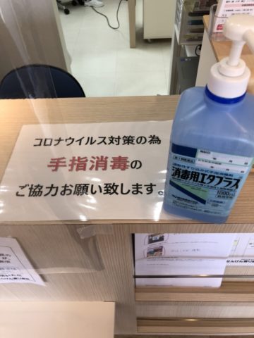 当医院では受付に手指消毒用のアルコールをご用意しておりますので、手指の消毒をしてから診療室へお入り下さい。